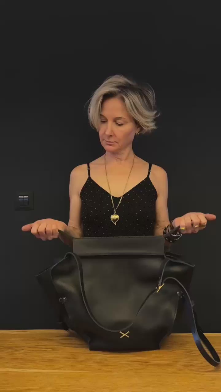אנה | תיק סל מעור | שחור